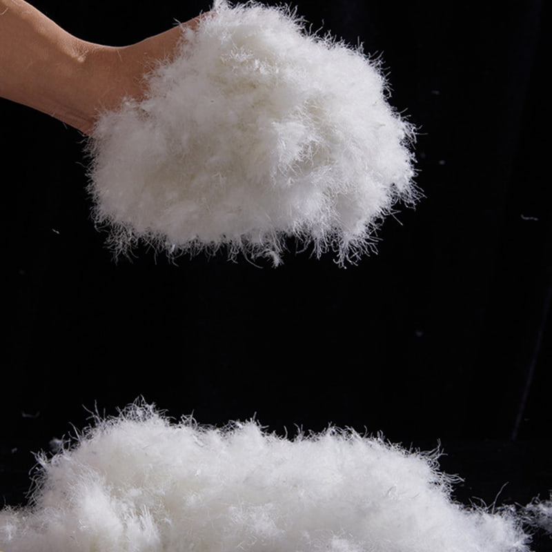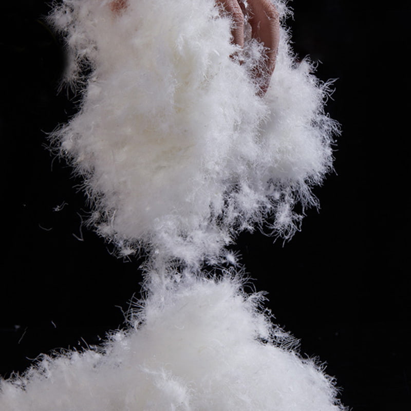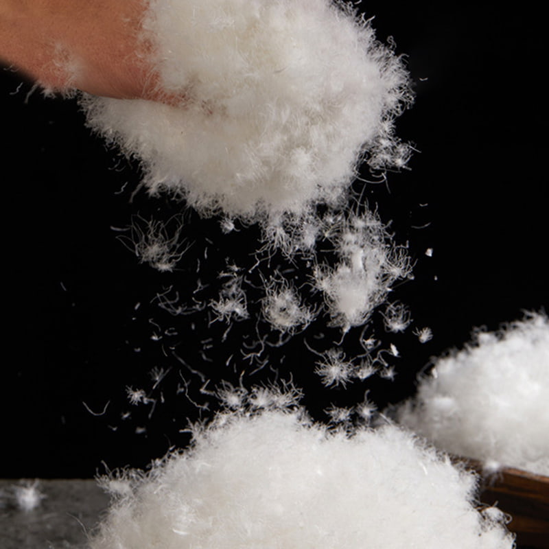 Originato dalle aree di produzione della piuma dell'addome, del collo e delle ali di oche bianche di alta qualità, il piumino naturale presenta una forma unica di delicati grappoli come amenti di canna, che formano un rapporto aureo con le piume squamose. Essendo una rara fibra proteica animale, la superficie di ciascuna fibra di piumino d'oca è densamente ricoperta da milioni di pori triangolari su scala nanometrica. Questi pori precisi sono come dispositivi di controllo della microtemperatura che possono regolare in modo intelligente lo spazio tra le fibre in base alla temperatura ambiente per formare una rete di controllo dinamico della temperatura. Quando il respiro caldo emesso naturalmente dal corpo umano entra in contatto con lo strato inferiore, la struttura dei pori blocca efficacemente la temperatura attraverso l'adsorbimento a livello molecolare e allo stesso tempo costruisce una barriera di isolamento termico tridimensionale, bloccando efficacemente il percorso di invasione dell'aria fredda esterna, offrendo un'esperienza di cura della temperatura costante in tutte le condizioni atmosferiche.